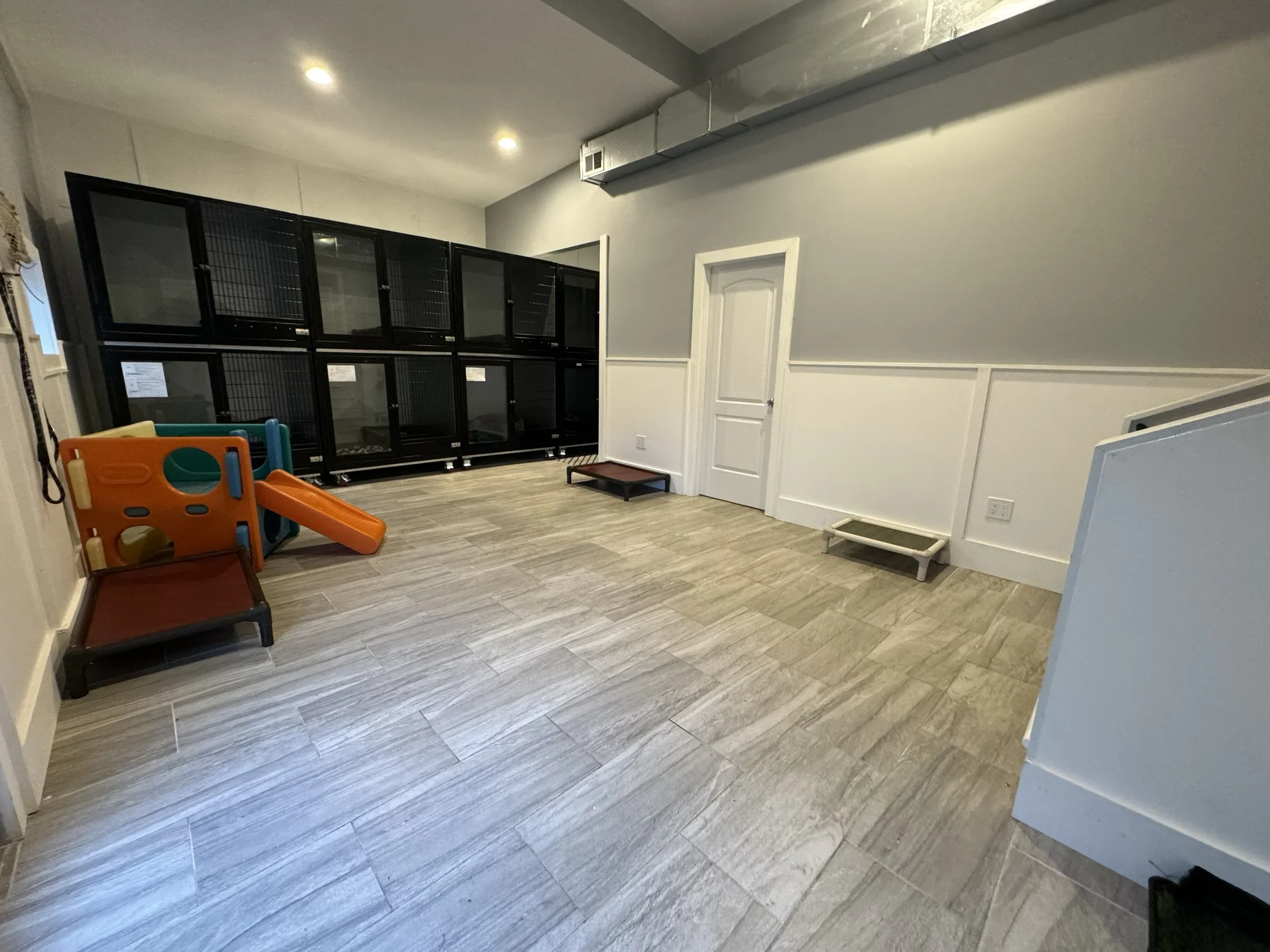 Our spacious cabins offer plenty of room for your pup to stretch their legs and move around comfortably. For our smaller canine friends, we provide stress-free accommodations in a specially designed area dedicated exclusively to small dogs. Included with every overnight stay is a full day of daycare and playful activities, ensuring your pet stays happy and engaged throughout their time with us.