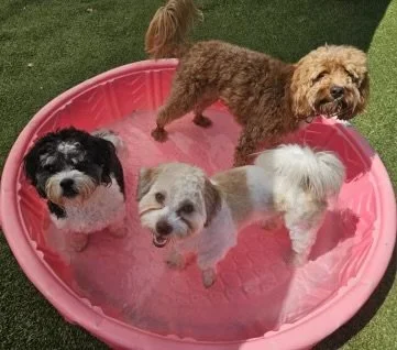 We have multiple indoor and outdoor play spaces that your pup is sure to love and enjoy! Additionally, we set up a refreshing pool for the pups who love to swim, whenever the weather permits.